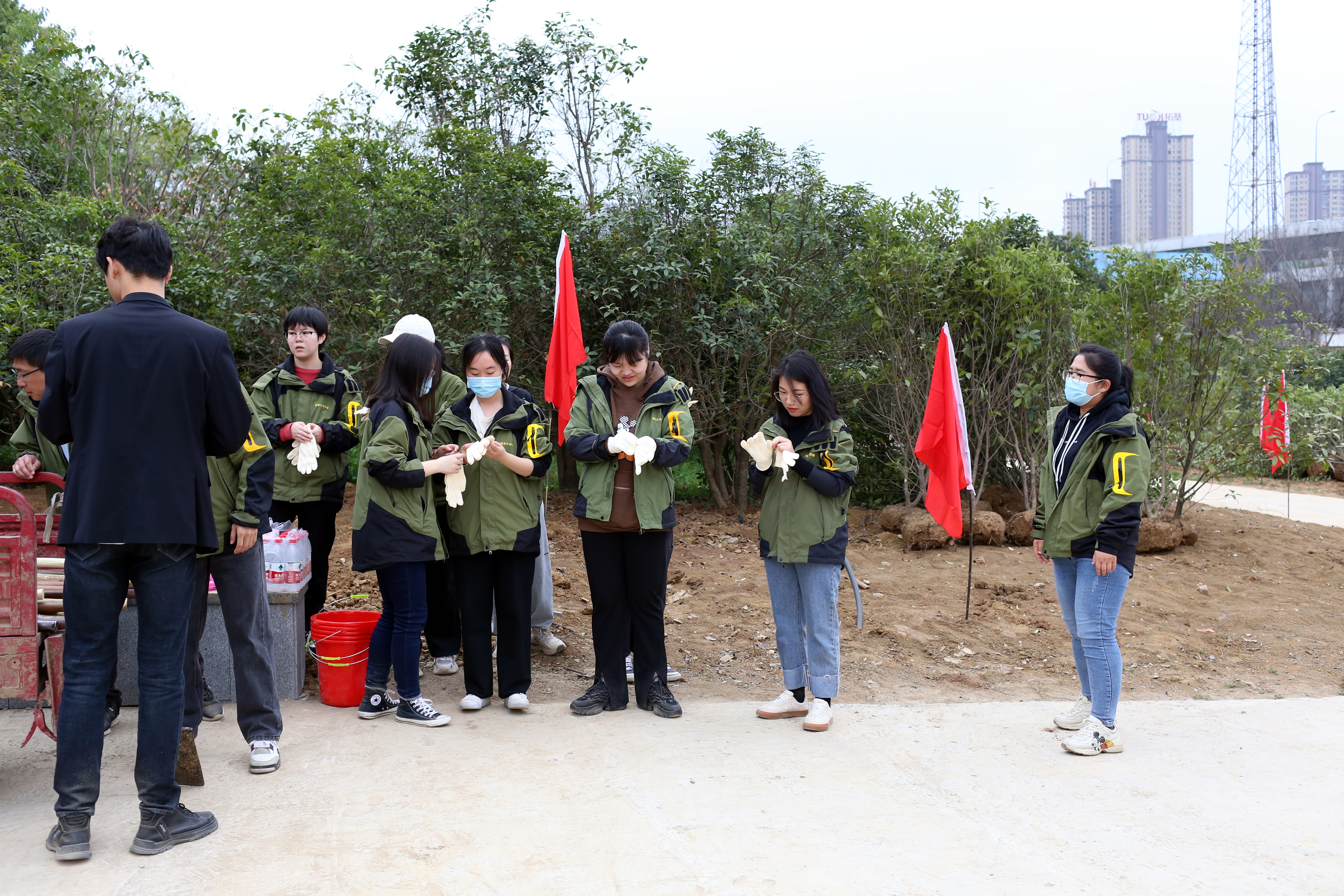 为了实现科学、高效地种植树木,庐州公园项目的专业种植人员向大家说明了植树流程及注意事项,从选地、树穴大小、回填、栽植要领、覆土和浇水等步骤一一讲解;讲解完毕后,大家有序领取各自的工具,开始劳作。