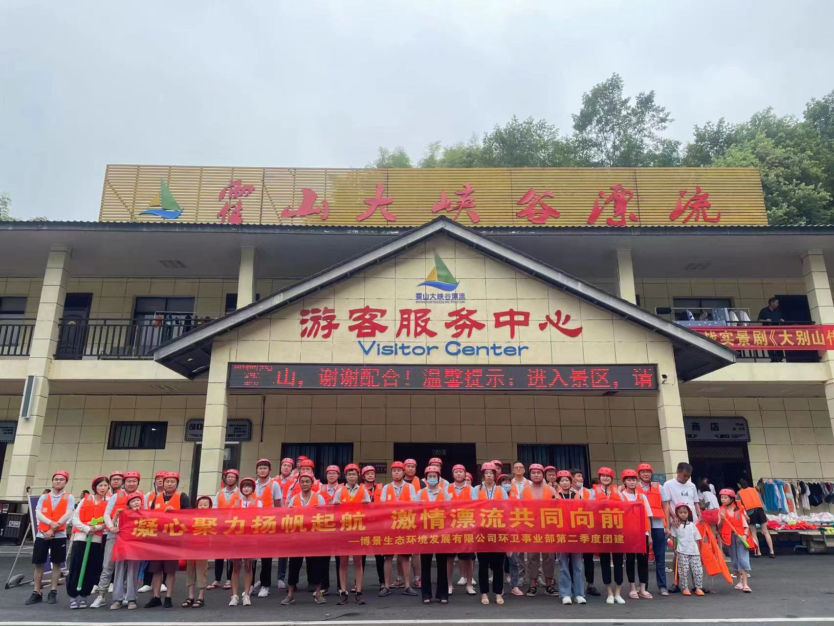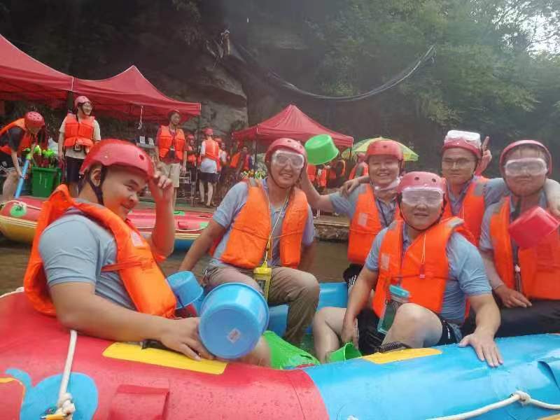 7月23日,主题为"凝心聚力扬帆起航,激情漂流共同前进"的漂流团建活动在霍山大峡谷举行。今年会环卫事业部的员工们统一着装,戴好安全帽,穿上救生衣全副武装,做好漂流安全准备工作。